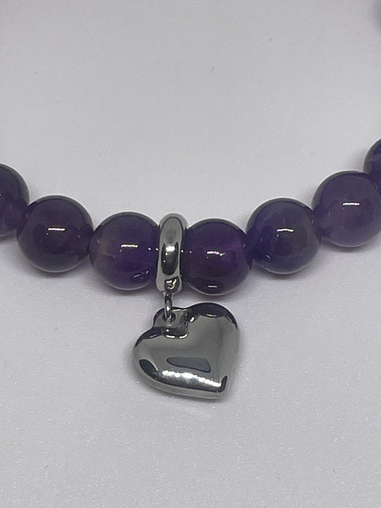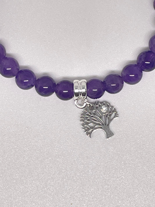 Amethyst Gemstone Beaded Bracelet with Tree of Life Charm